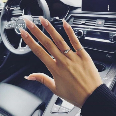 Die ovale Form der Nägel ist der Mandelform sehr ähnlich, nur die Ecken sind stärker abgerundet. Sie sieht gepflegt aus und betont die Weiblichkeit ihrer Hände.