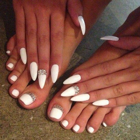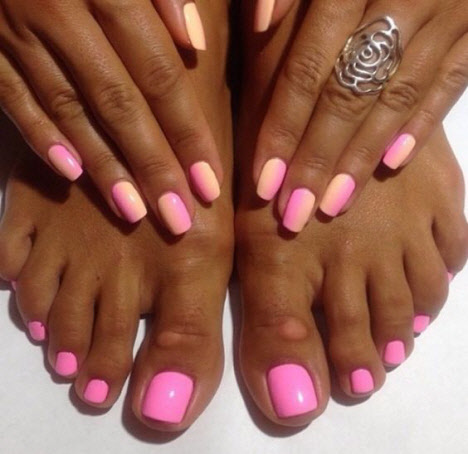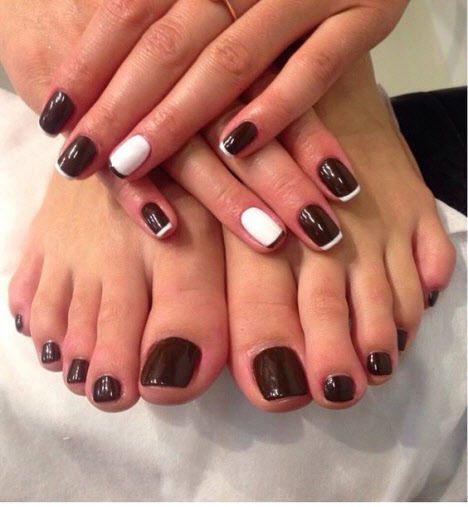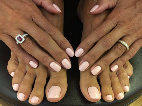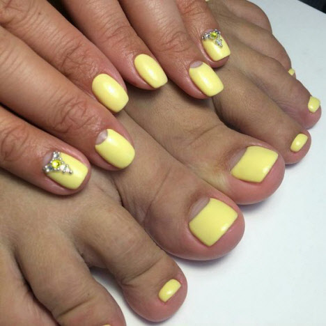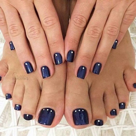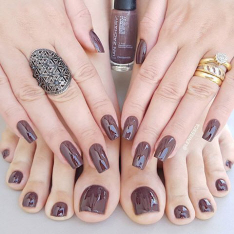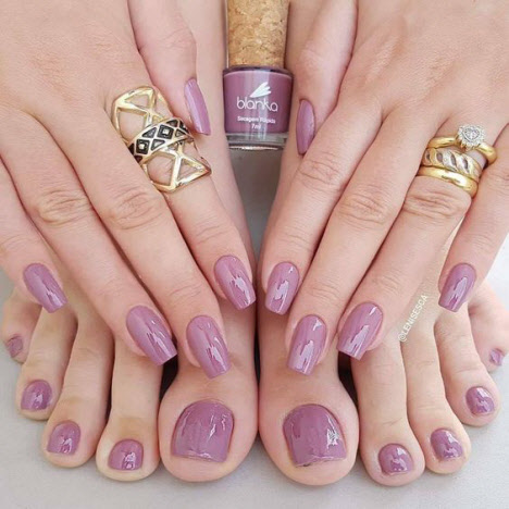 Die gebräuchlichste Technik für eine elegante Maniküre an Händen und Füßen ist die Verwendung des gleichen Tons.