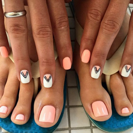 Fotoneuheiten Maniküre und Pediküre im gleichen Stil. Top-Trend-Design-Ideen