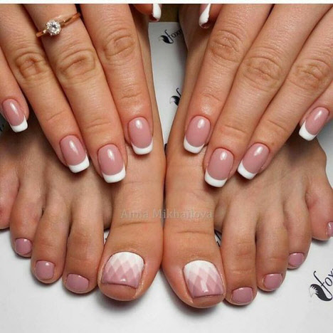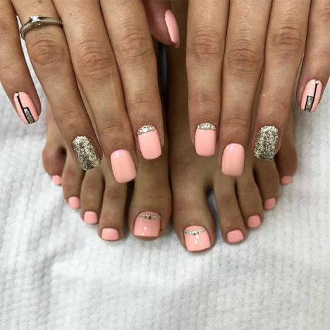 Einige Mädchen lieben Maniküre und Pediküre in verschiedenen Farben, während andere den gleichen Stil und die gleichen Farben lieben. Heute möchten wir Ihnen ein Foto einer Neuheit Maniküre + Pediküre im gleichen Stil anbieten. Weitere interessante Pediküre-Optionen finden Sie hier: https://besthair.desigusxpro.com/de/uxod-za-telom/pedikyur-2019-2020-modnye-i-krasivye-foto-novinki-dizajna-dlya-vashix-nozhek/