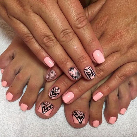 Lassen Sie sich von den Ideen inspirieren, die wir für Sie zusammengestellt haben und kreieren Sie Ihre perfekte Maniküre und Pediküre im gleichen Stil.