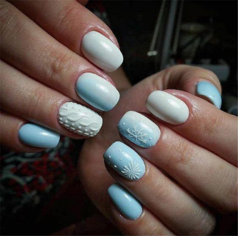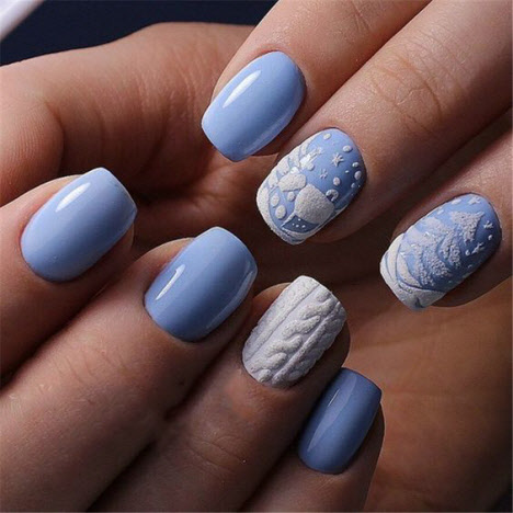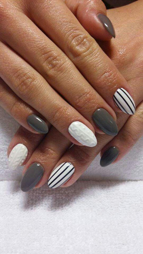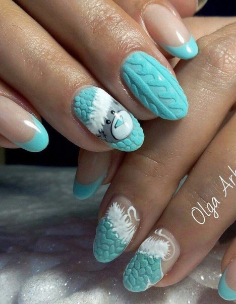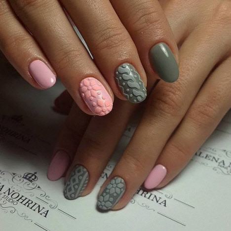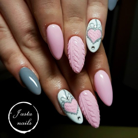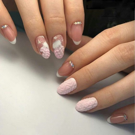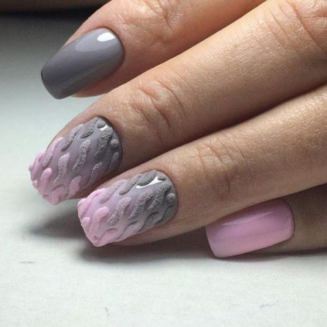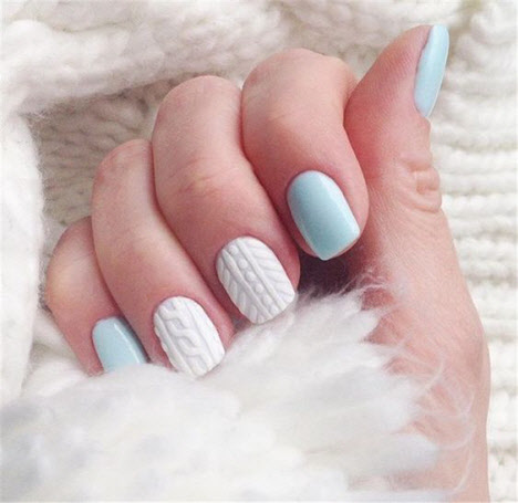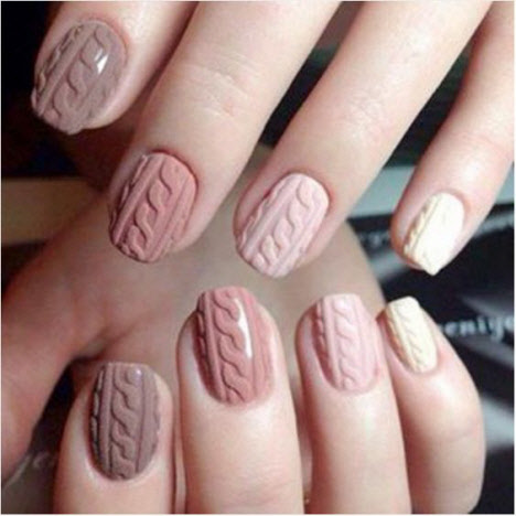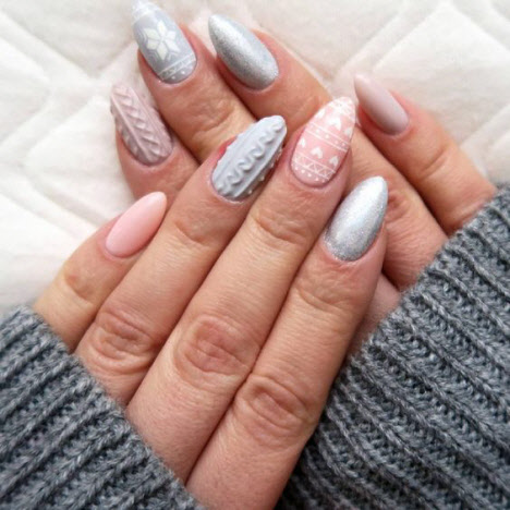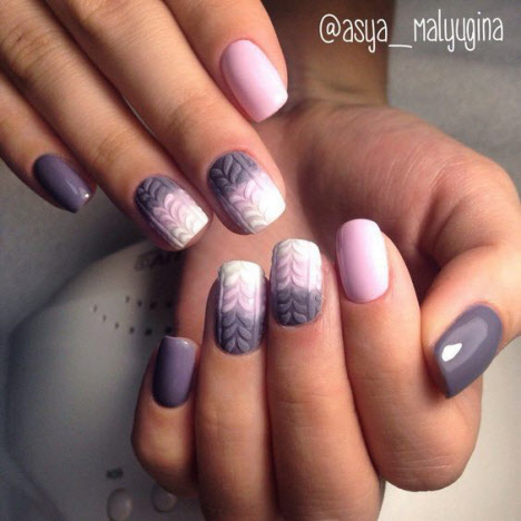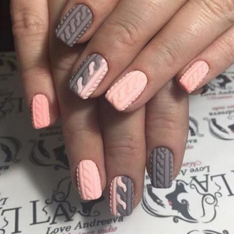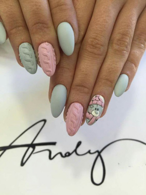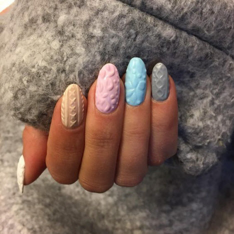 Pastelltöne eignen sich sehr gut für Strickmaniküre, die an warme Strickpullover und Pullover erinnern, in die wir uns bei kaltem Wetter gerne einhüllen.
