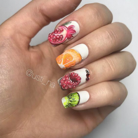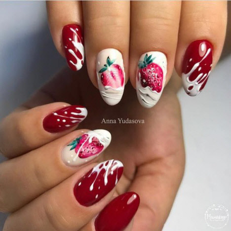Modetrends des Sommers 2024-2025 sind ein Wechsel der Maniküre und interessante Designideen. Künstlerische Nailart auf weißem Hintergrund ist zu einem sehr beliebten Trend geworden.Als weiße Leinwand wird weißer Gellack verwendet, auf dem kontrastierende thematische Zeichnungen entstehen. Darüber hinaus kann es viele Ideen geben: von grünen Blättern bis hin zu Landschaften im provenzalischen Stil. Super neu ist der Unschärfeeffekt der Maniküre. Bei dieser Technik wird ein einfaches Muster auf einen farbigen, unscharfen Hintergrund gelegt.