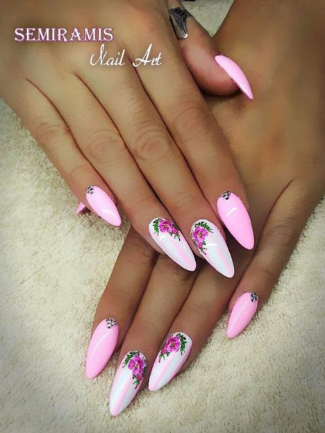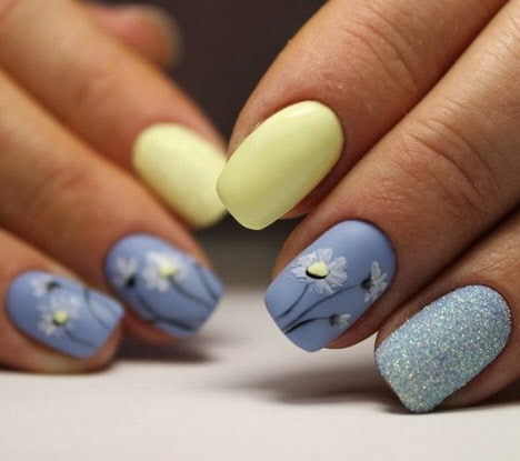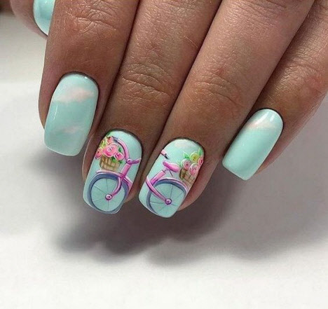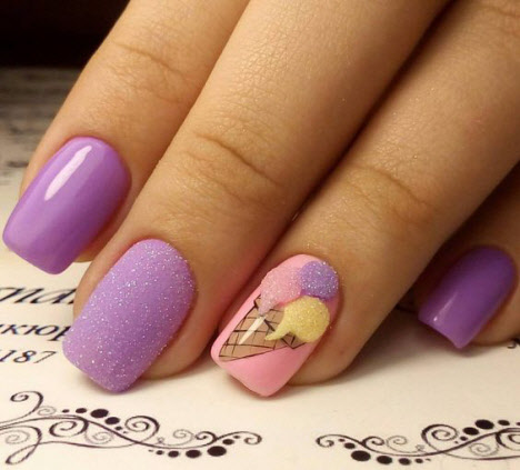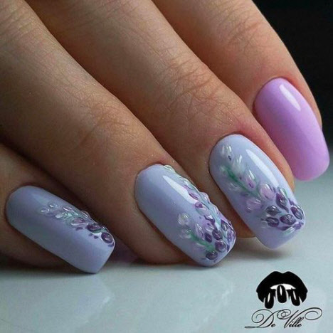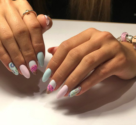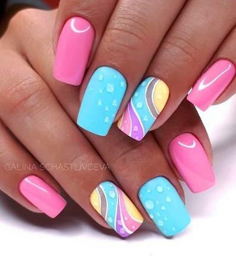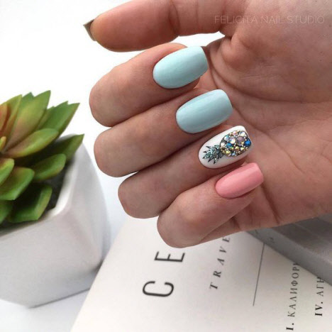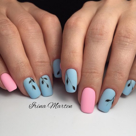 Maniküre in rosa-blauer Farbe ist eine der erfolgreichsten Kombinationen in der Maniküre, diese Farben harmonieren perfekt miteinander, sehen gleichzeitig hell und romantisch aus.