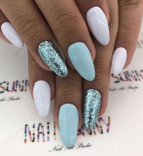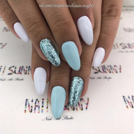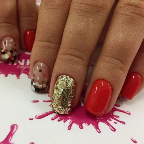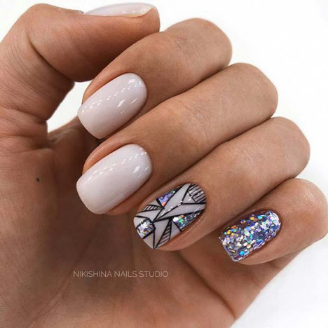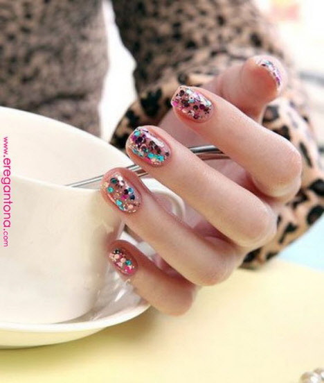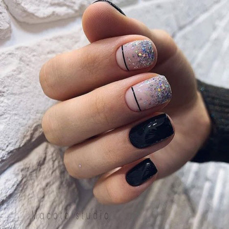 Sogar Mädchen, die Glitzer, Kieselsteine hassen, machen manchmal eine Maniküre mit ihnen, hier liegt unsere weibliche Essenz, wir schieben es auf Hormone, PMS, Frühling usw.) Aber wer von uns macht nicht ab und zu so eine Maniküre ? Wir zeigen Ihnen, dass Pailletten sehr stilvoll und schön aussehen können, wie auf dem Foto unten: