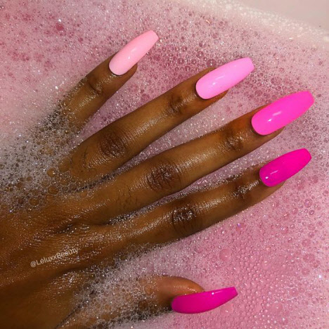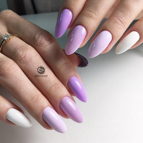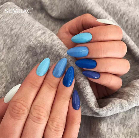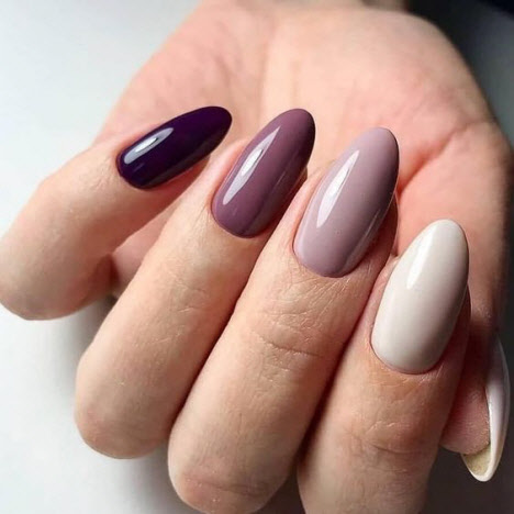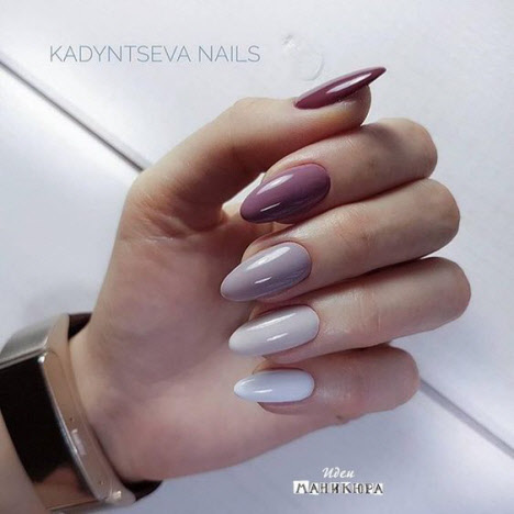 Sie werden niemanden mit einer Ombre- oder Farbverlaufsmaniküre überraschen, aber wenn Sie mehrere Farbtöne auswählen und auf jeden Nagel einen neuen Lackton auftragen, erhalten Sie einen völlig anderen Farbverlauf. Wir wählen 4-5 Lacktöne in einem Farbschema aus und tragen vom dunkelsten bis zum hellsten auf und die modische Maniküre der Saison 2024 ist fertig!
