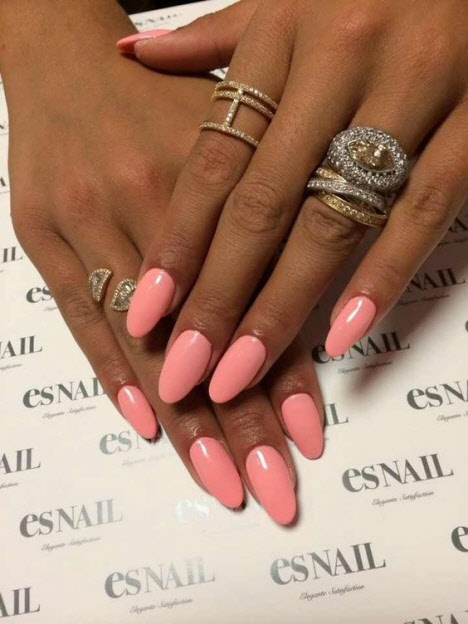 Eine monochromatische helle Maniküre sieht ohne Zusätze sehr stilvoll aus. Seine Schönheit liegt in seiner hellen, gesättigten Farbe, dem perfekt gleichmäßigen Auftrag und den schön geformten Nägeln. Achten Sie auf die quadratisch-ovalen und mandelförmigen Nägel, sie werden 2024-2025 ihren Höhepunkt erreichen.