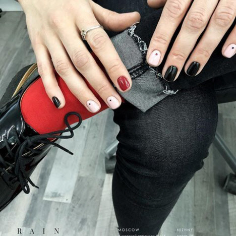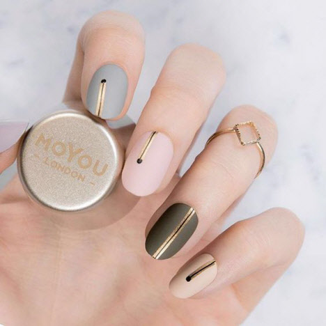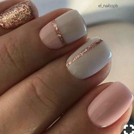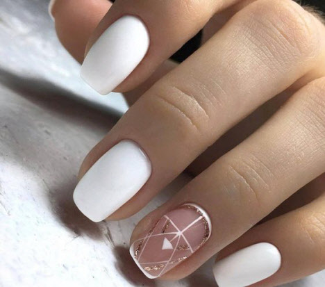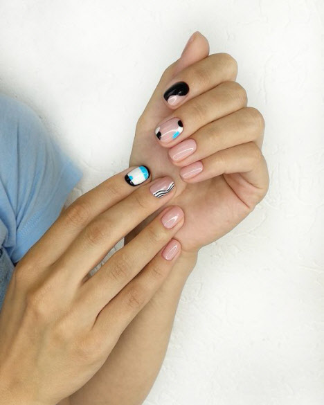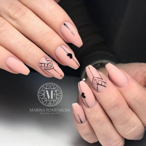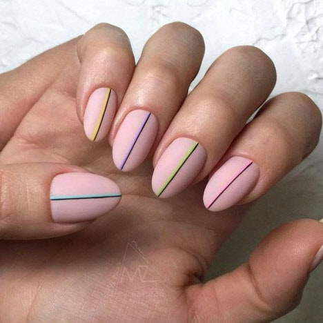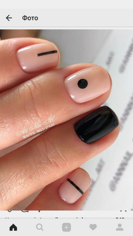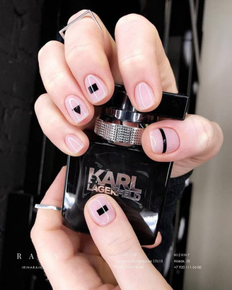 Der dritte Trend ist Minimalismus, eine solche Maniküre ist für alle Gelegenheiten geeignet, sie sieht ordentlich und natürlich aus, viele Mädchen lieben diese Maniküre wegen ihrer Einfachheit und Vielseitigkeit. Wählen Sie Nude-Pastelltöne als Grundfarbe, und die Zeichnungen sollten prägnant sein (dies kann eine gepunktete Linie sein, keine vollwertige Zeichnung) und so wenig Dekoration wie möglich.