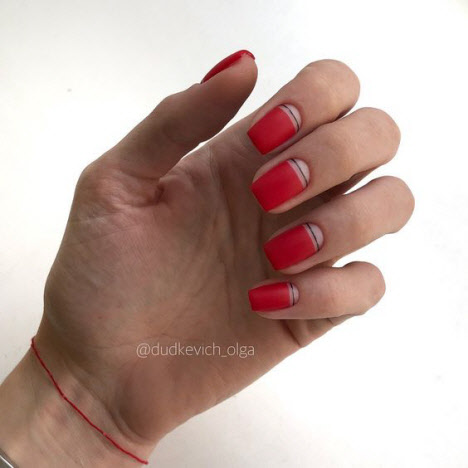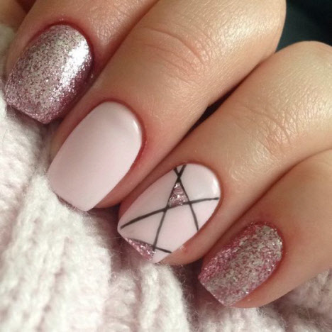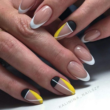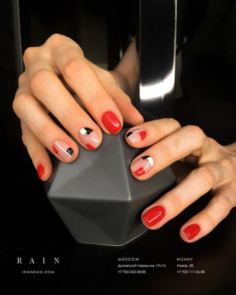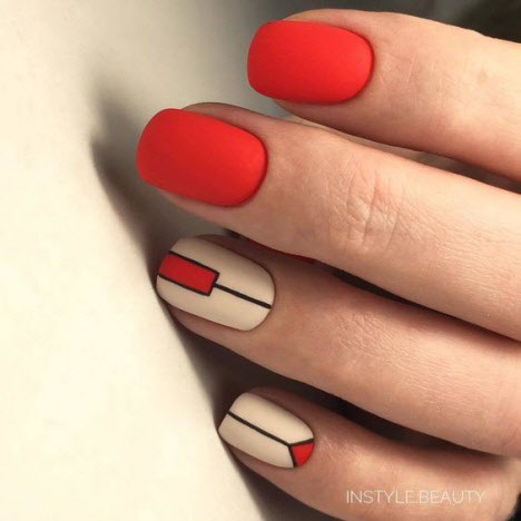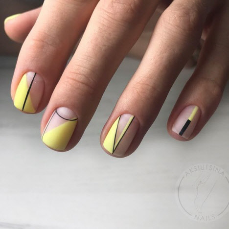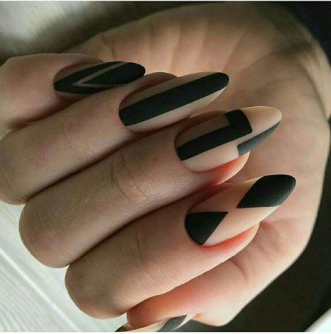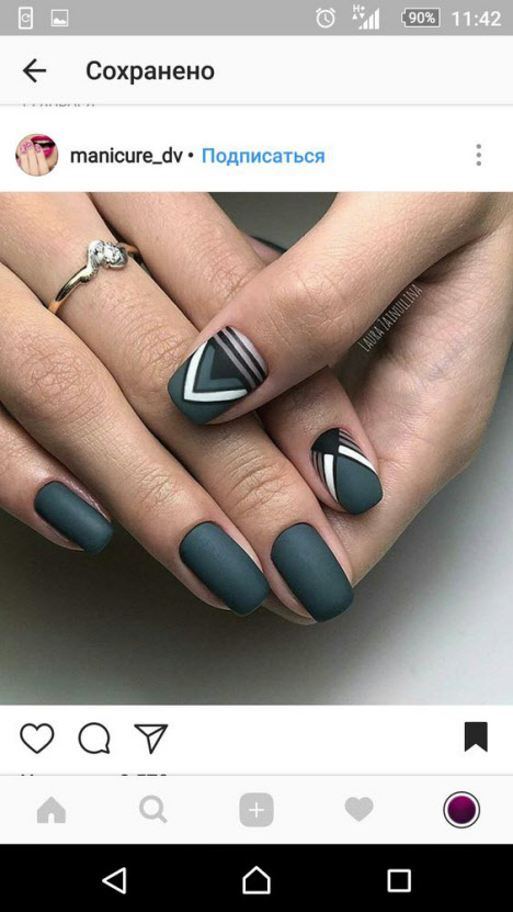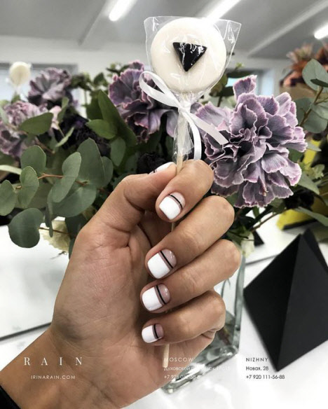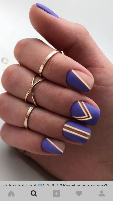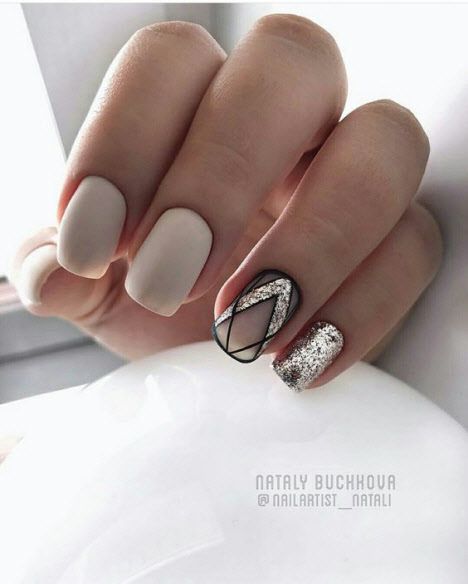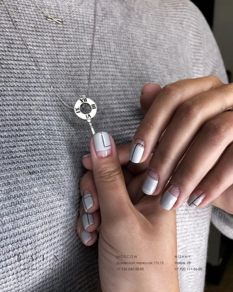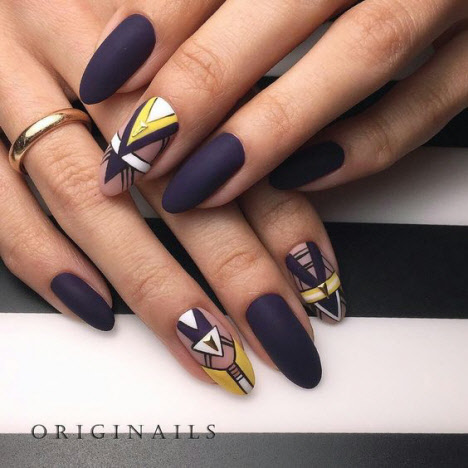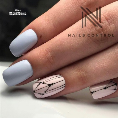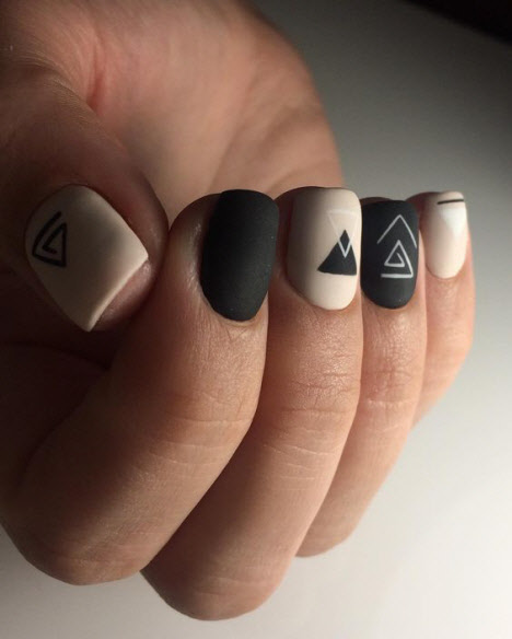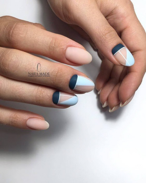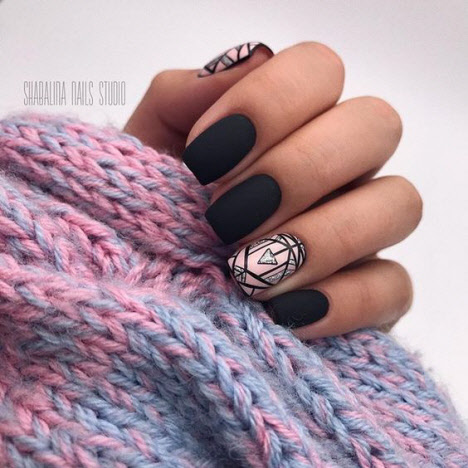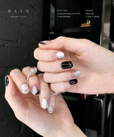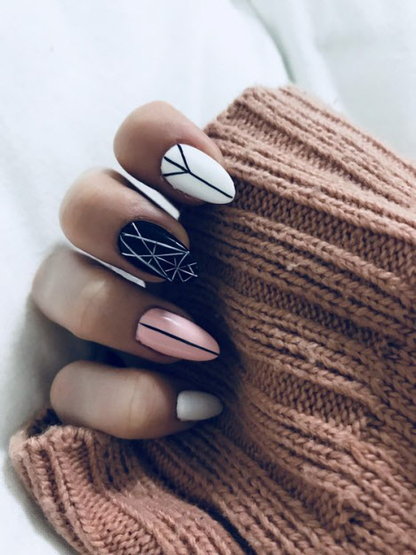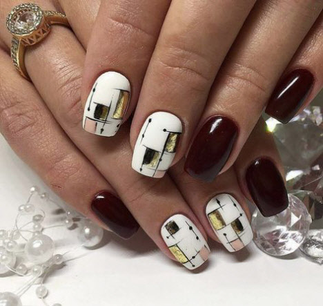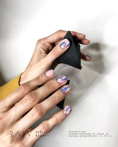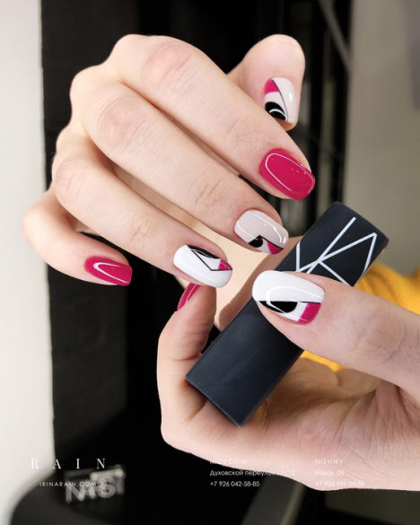 Je komplexer das geometrische Muster, desto weniger Nägel sind damit bedeckt, alles sollte in Maßen sein, grelle Nägel sehen lustig und unpassend aus (ich habe so viele „schöne“ Optionen im Internet gesehen, dass man unwillkürlich anfängt zu denken, was orientieren sich die Leute bei der Auswahl einer solchen Maniküre?) ...