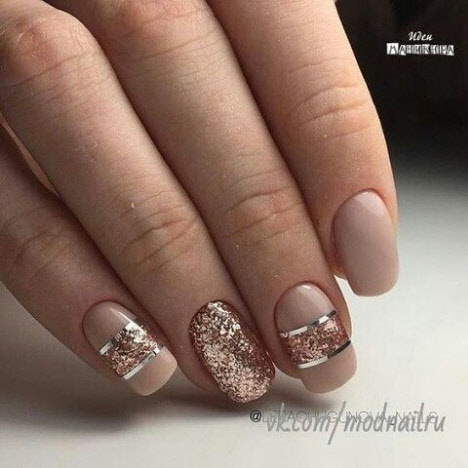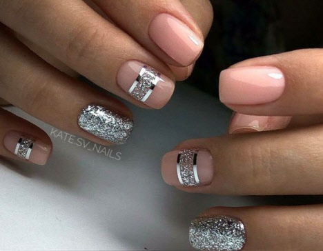 Mit Glitzer in Ihrer Maniküre können Sie eine riesige Palette an Nageldesigns kreieren, die Ihrem täglichen Leben Glanz und Feierlichkeit verleihen. Sie können einfach einen Glitzerlack mit kleinen oder großen glänzenden Partikeln in der Komposition kaufen und sich auf einen oder zwei Nägel konzentrieren. Oder Sie können einen Schimmer, Glitzer, lose Pailletten, Strasssteine verwenden.