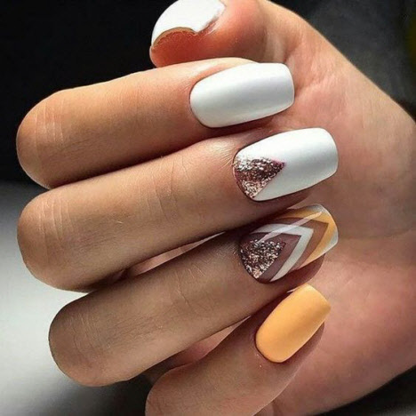Wir bieten Ihnen Fotos mit hellen und frischen Ideen für eine stilvolle geometrische Maniküre.