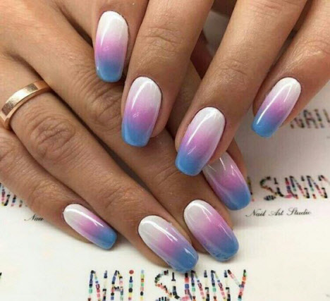 - Ombre. Ombre Maniküre (Gradient) sieht natürlich und sehr schön aus. Die Quintessenz ist ein sanfter Übergang von einem Farbton zum anderen, normalerweise von dunkler zu heller.