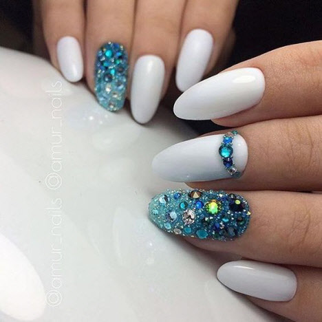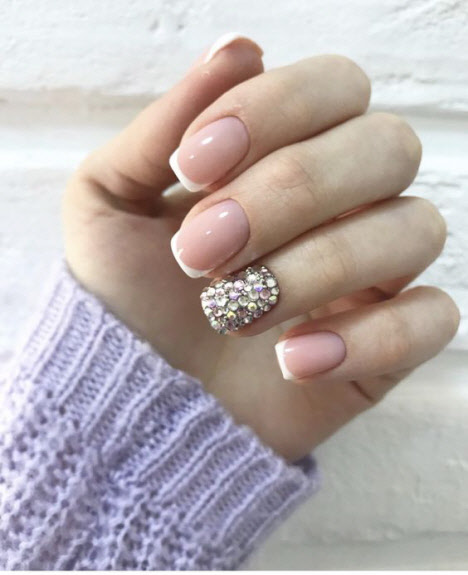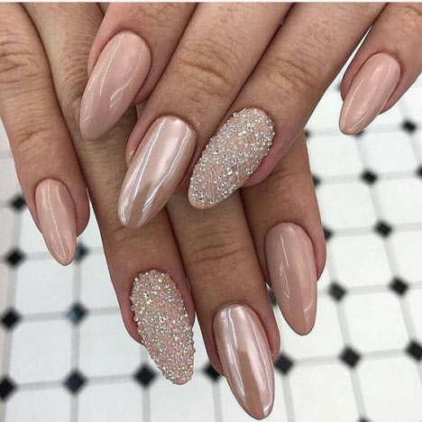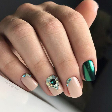 Eine festliche Maniküre ohne schicke Kieselsteine und helles Funkeln ist schwer vorstellbar, sie betonen perfekt die Festlichkeit einer Maniküre. Ihre Aufgabe ist es, eine solche festliche Maniküre so zu wählen, dass sie im Alltag angemessen ist, da Sie mehr als einen Tag eine Maniküre machen.