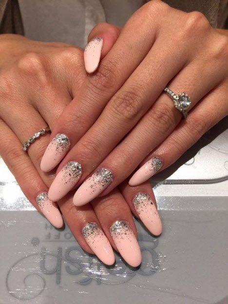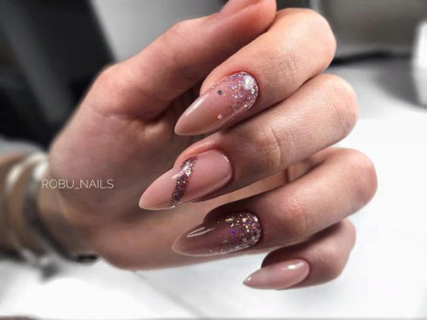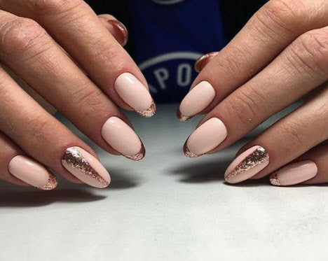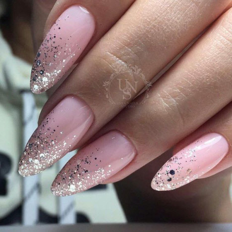 Die Verwendung von Funkeln und Kieselsteinen ergibt eine festliche und lebendige Maniküre. Bei einer Maniküre mit Funkeln und Steinen ist es am wichtigsten, das Maß beim Dekorieren zu kennen. Es ist besser zu betonen als auf alle Nägel aufzutragen, um andere nicht zu blenden. Eine Glitzermaniküre ist einfacher, aber nicht schlechter als ein Kieselstein, sie konzentriert sich auf Ihre Griffe, außerdem maskiert Glitzer perfekt Unregelmäßigkeiten und Defekte in der Nagelplatte. Es gibt Glitzer in jeder Lackmarke, sie können flüssig, trocken, in verschiedenen Größen und Farben sein.