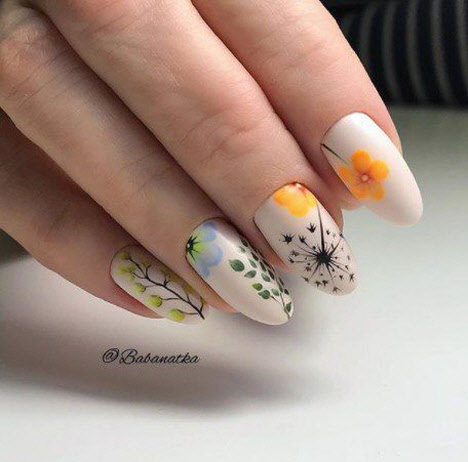 - Maniküre mit Zeichnungen und Mustern (Blumen, Animalprint, "Einhornträne", "Farbspritzer")