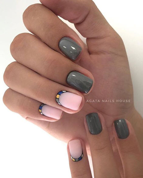 Alle diese Arten von Maniküre werden in unserem Artikel vorgestellt. Wenn wir über Lacktöne sprechen, können Fashionistas in dieser Saison nicht auf solche Farben verzichten: klassisches Rot und Schwarz, Weiß, Grau, Grün, Blau, Braun, Beige, Pastelltöne in Rosa, Blau, Minze, Flieder, Gelb, Kaffee.