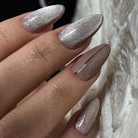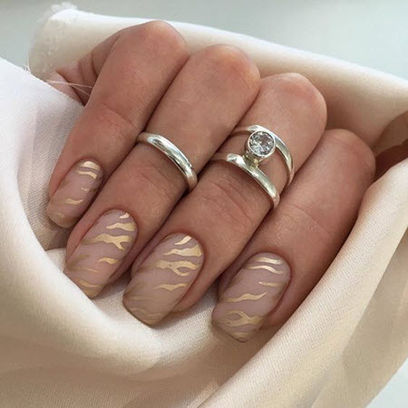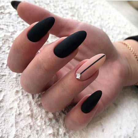 Das samtige Finish, auch ohne Design, verleiht der Maniküre einen edlen und teuren Look. Ein mattes Finish bietet eine elegante Alternative zu einem hochglänzenden Glanz. Dies ist definitiv der Haupttrend in der Maniküre, wenn Sie elegant, teuer und stilvoll aussehen möchten.