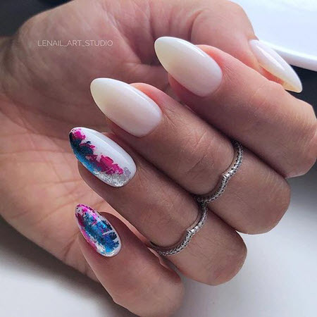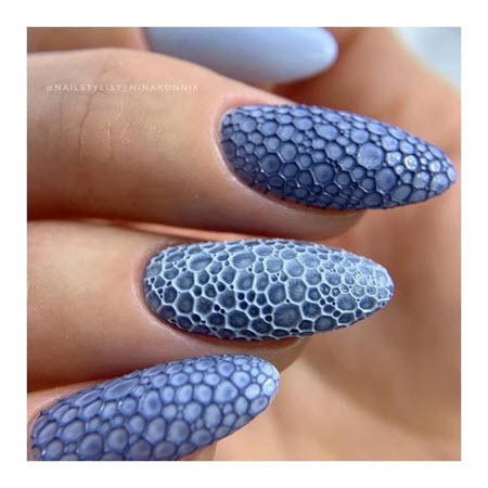 Schaummaniküre in trendigen Sommerfarben (Blau, Rosa, Weiß, Beige) wird 2024 ein tolles Nageldesign. Schaummaniküre wird mit dem gebräuchlichsten Schaum (Shampoo, Seife) durchgeführt. Zuerst wird der Lack aufgetragen, dann die Oberseite, alles wird getrocknet und am Ende wird die Oberseite erneut mit einer dünnen Schicht aufgetragen und geschäumt, dann wird die Oberseite zusammen mit dem Schaum in den Trockner geschickt . Die Reste werden mit einer Serviette gesammelt.
