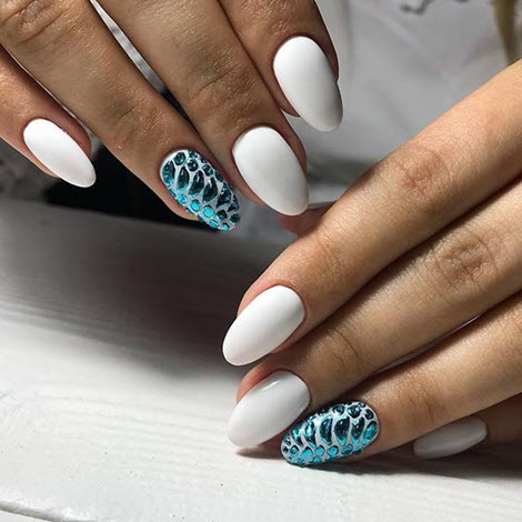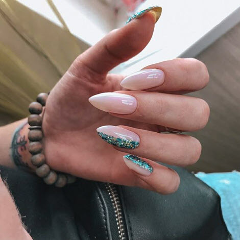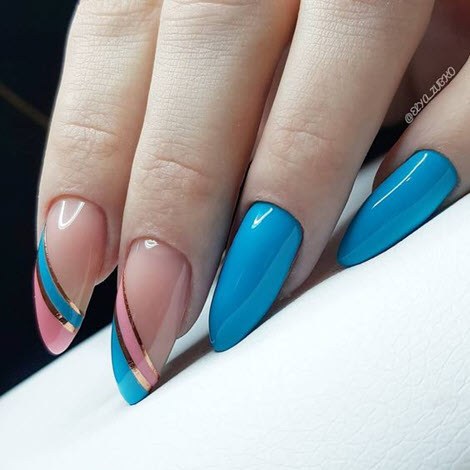 Kühles Türkis und Blau mit goldenen Highlights ergänzen fast jeden Hautton. Sie werden jedes Mal, wenn Sie sich Ihre Maniküre ansehen, einen Ausflug ans Meer buchen wollen.