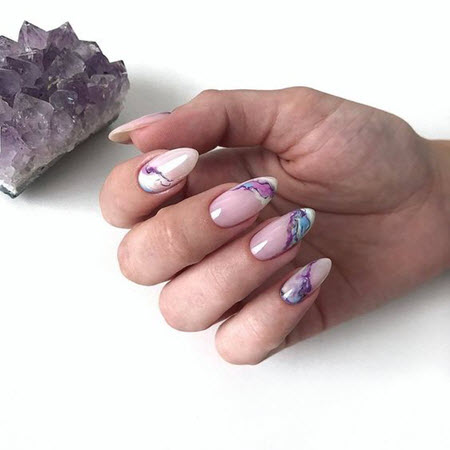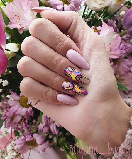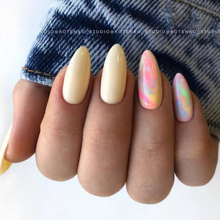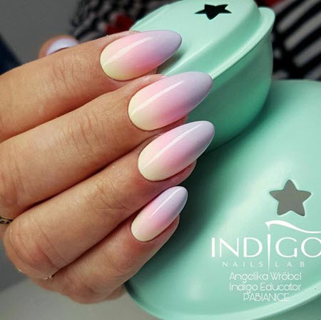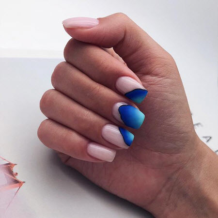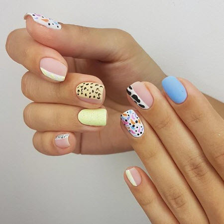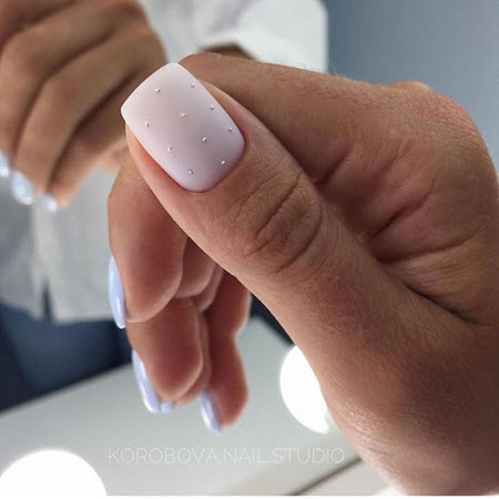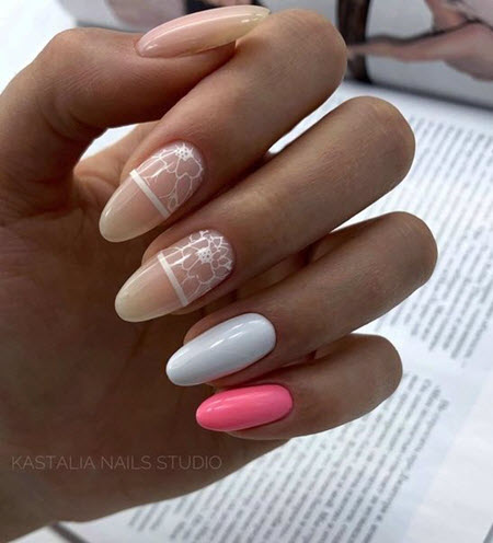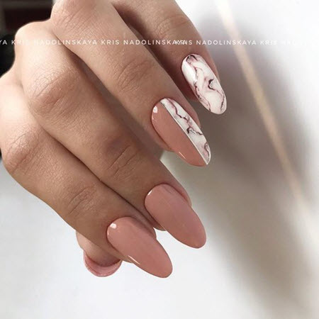 Transluzente Texturen und minimalistische Designs in Nude-Tönen liegen im Trend. Maniküre-Design in Pastellfarben kann in fast jeder Technik durchgeführt werden, die schönsten Beispiele finden Sie auf dem Foto unten: