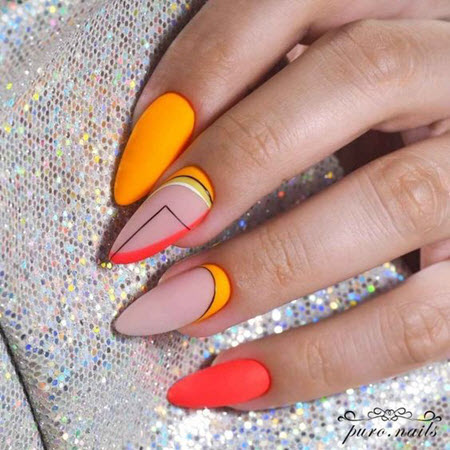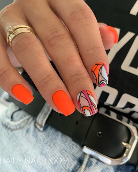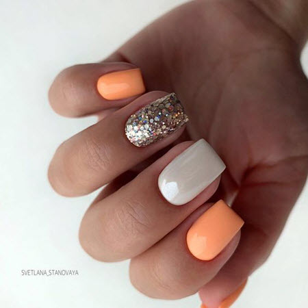 Der unbestrittene Favorit im Jahr 2024 ist die orange Farbe des Nagellacks, er ist ideal für die Sommermaniküre, also ist saftiges Orange wieder in Mode, und achten Sie auch auf Gelb, Himbeere, Rot, Blau, na ja, wie können Sie sich eine Sommermaniküre vorstellen ohne weißen Nagellack.
