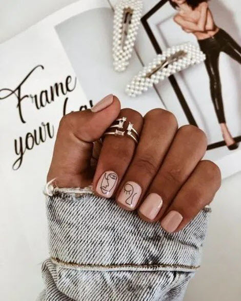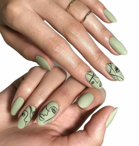 Die Sommermaniküre-Trends 2024 werden mit schönen Designideen mit Silhouetten präsentiert. Dieses originelle Nageldesign ist besonders relevant in einem matten Finish. Maniküre mit einem Bild eines schönen weiblichen Aussehens erschien vor relativ kurzer Zeit und bricht in dieser Saison alle Popularitätsrekorde.