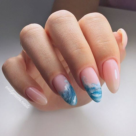 Die Maniküre, die das Meer darstellt, ist die beliebteste Sommermaniküre der Saison 2024. Das Meer auf den Nägeln ist so schön und ästhetisch einwandfrei dargestellt, dass es diesen Sommer unmöglich ist, es nicht zu tun.