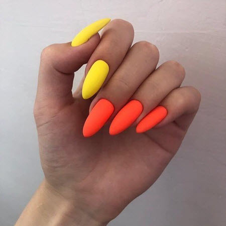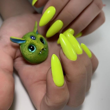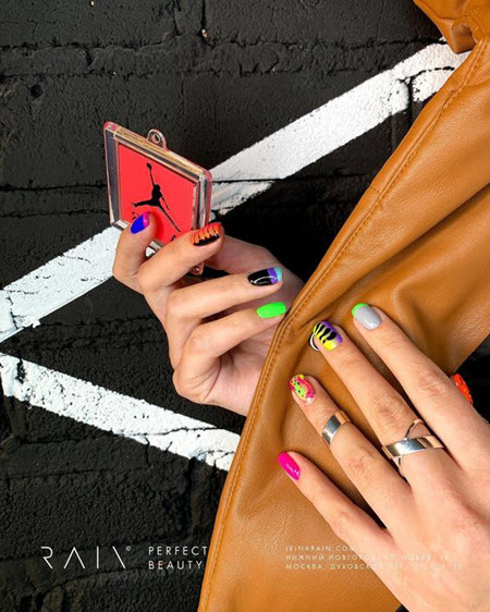 Keine Sommersaison ist komplett ohne eine Maniküre in leuchtenden Neonfarben. 2024 sind Neonlacke in Orange, Hellgrün, Gelb, Grün und Pink im Trend. Eine solche Maniküre sieht selbst in einem einfarbigen Finish stilvoll und auffällig aus.
