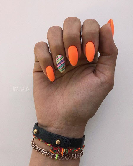 Die orange Farbe des Lacks ist zweifellos der Favorit unter den Farbtönen des Jahres 2024. Damit können Sie die interessantesten Ideen für das Nageldesign verkörpern.