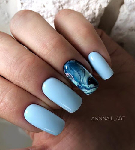 Die Farbe Blau hat so viele Facetten, dass man sich nicht in sie verlieben kann. Blaue Maniküre im Jahr 2024 kann sehr vielfältig sein, interessante Ideen für sommerliche Nageldesigns fangen: