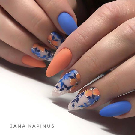 Aquarelle in Form von Blumen und anderen floralen Motiven zu zeichnen, wird in der Sommermaniküre der Saison 2024 ein Muss sein.Eine florale Zeichnung kann im Stil des Minimalismus (einfach und klein in Form eines Akzents) oder vielleicht ein ganzes Gemälde auf den Nägeln sein. Auch in Form von Aquarellen sehen Schmetterlinge, Vögel, die auch in der Sommermaniküre dargestellt werden können, sehr schön aus.