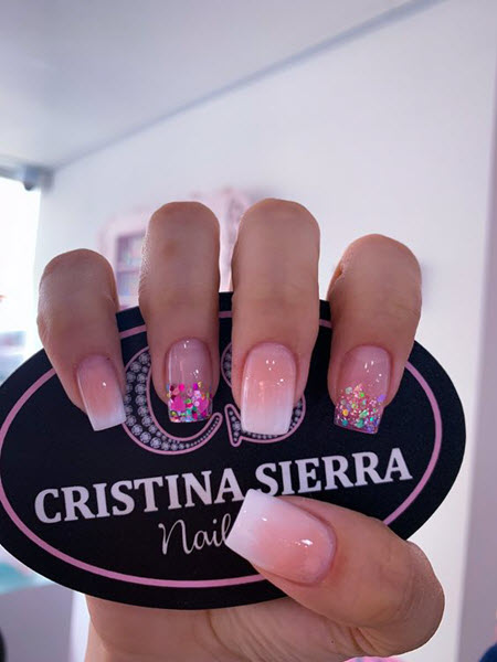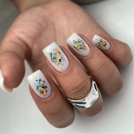 Auch eine Sommermaniküre braucht Glanz und Chic. Der beste Weg, um einer Maniküre Glanz zu verleihen, ist mit Glitzer. Pailletten für Nägel können verschiedene Farben, Formen und Größen haben. Wählen Sie Glitzer, der zu Ihrer Hauptnagelfarbe passt.