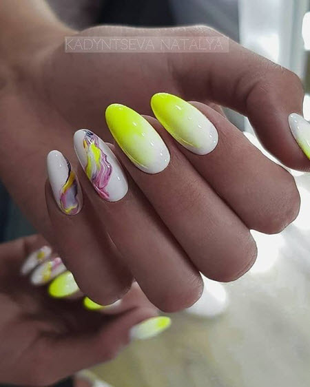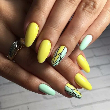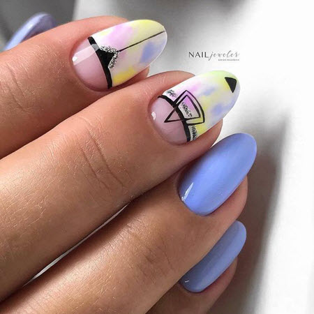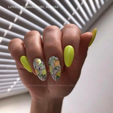 Fotoauswahl modischer und schöner Sommermaniküre für kurze und lange Nägel (oval, Mandel, eckig):