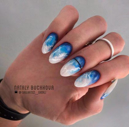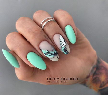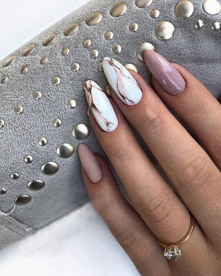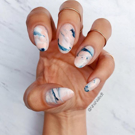 Der Marmoreffekt auf den Nägeln eignet sich hervorragend für die Sommermaniküre 2024. Um den Marmoreffekt zu erzielen, braucht es nur wenig: zwei oder mehr kontrastierende Lacktöne, ein wenig Fantasie und Geschick. Die Farbpalette für die sommerliche Marmormaniküre umfasst die gesamte Pastellpalette, zarte Grautöne, Rosa, Blau, Karamell, Weiß.