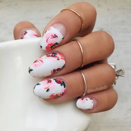 Je länger die Nägel, desto effektiver können die Designs ausfallen, aber auf kurzen Nägeln sehen die Designs sehr schön und stilvoll aus. Zeichnungen auf Nägeln können mit Pinsel und Wasserfarben aufgetragen werden, oder Sie können Stempel oder Schablonen verwenden.