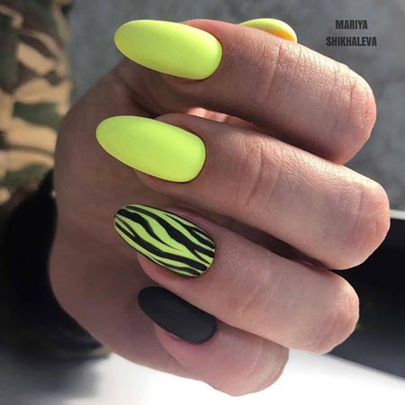 Helle Lacktöne und schwarze Tropfen, die die Schale von Wachteleiern imitieren, sehen in diesem Design, auf allen Nägeln oder in Form eines Akzents am besten aus. Und am Ende steht ein mattes oder glänzendes Finish.