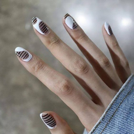 Nailart-Meister bieten uns die interessantesten Designlösungen für eine Maniküre mit Streifen. Ihre Fantasie inspiriert und weckt den unwiderstehlichen Wunsch, eine solche Maniküre zu wiederholen, die ideal mit Alltags- und Abendlooks kombiniert wird. Auch minimalistische Maniküre wird ermutigt, kreativ zu sein. Lassen Sie sich inspirieren, wie Sie Streifen und Linien in einer Maniküre kombinieren können: