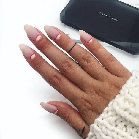 Die Negativ-Space-Maniküre im Stil des Minimalismus wirkt unaufdringlich, aber gleichzeitig sehr originell. Negative Raumoptionen können die Form eines Lächelns, Löcher, Ovale und Dreiecke haben.