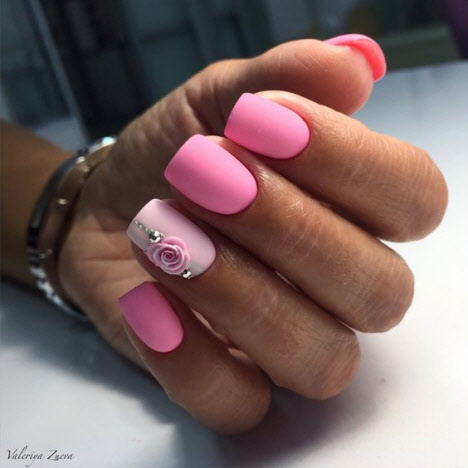 Pink Maniküre ist ein gerades mädchenhaftes Design, das die beste Option ist und am 8. März schwer vorstellbar ist. Sie können die rosa Maniküre mit Steinen, Glitzern, Folie oder einem Muster variieren. Dies wird ein schönes Nageldesign für den 8. März sein.