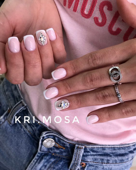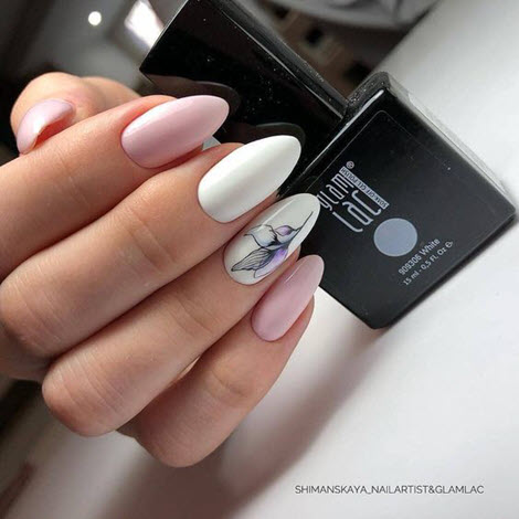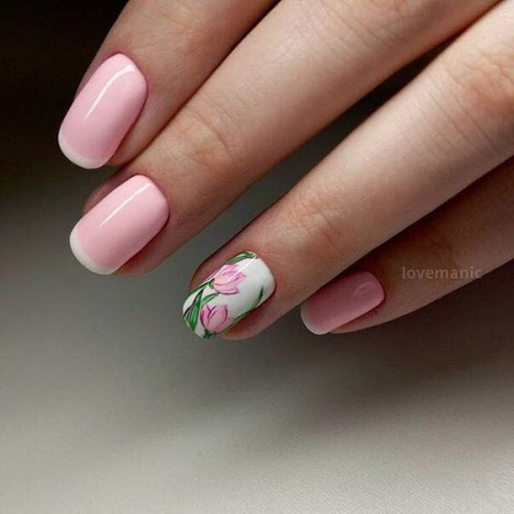 Wenn Sie für den 8. März einen romantischen und femininen Look kreieren möchten, dann können Sie auf eine sanfte Maniküre in Pastellfarben nicht verzichten. In einer festlichen zarten Maniküre können Sie Folgendes hinzufügen: