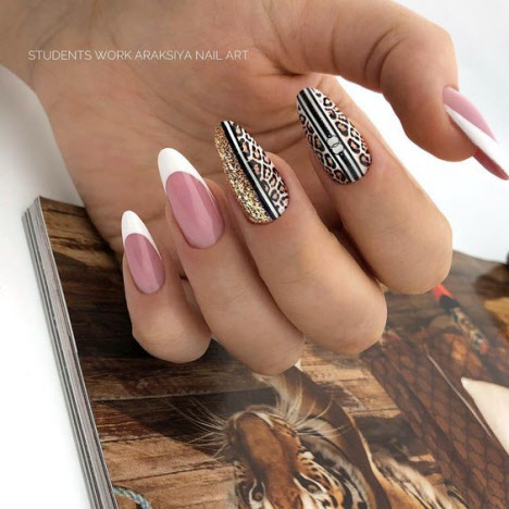 Geben Sie bei der Auswahl einer Maniküre mit einem Muster dem Design den Vorzug, das Ihnen gefällt. Dies kann eine Art kreative Zeichnung oder etwas aus dem klassischen oder minimalistischen Stil sein. Interessante Zeichenideen für den 8. März finden Sie in unserer Auswahl unten: