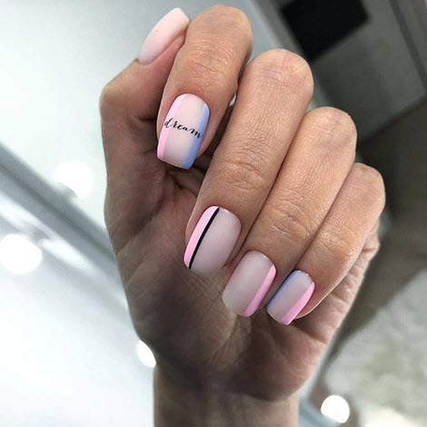 Romantische Schriftzüge in der Maniküre in sanften Tönen werden am 8. März eine großartige Ergänzung zu einer Maniküre sein. Wörter und Inschriften in der Maniküre können mit folgenden Mitteln erstellt werden: