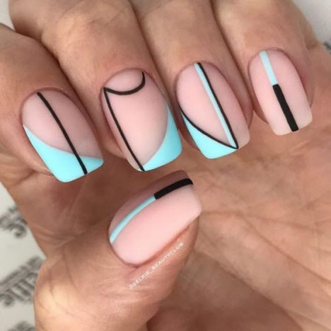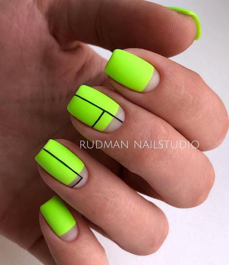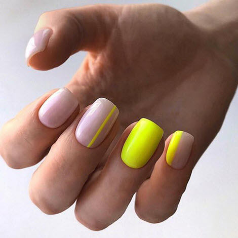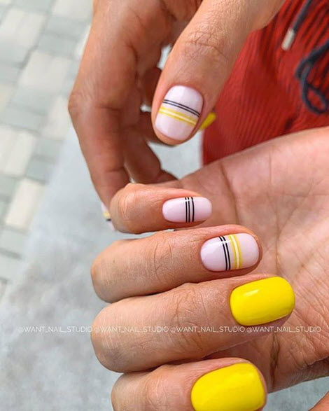 Maniküre-Design für kurze Nägel mit Linien und Streifen