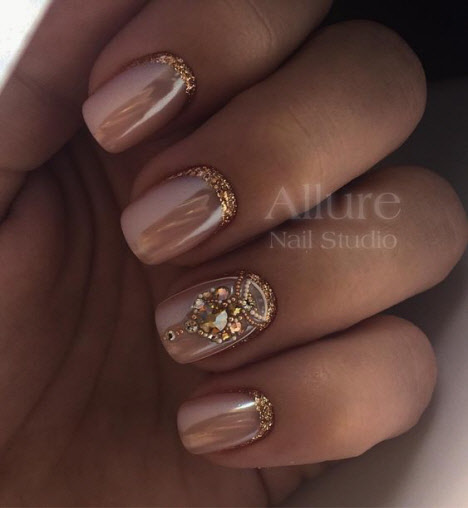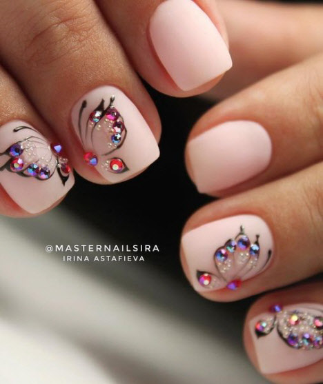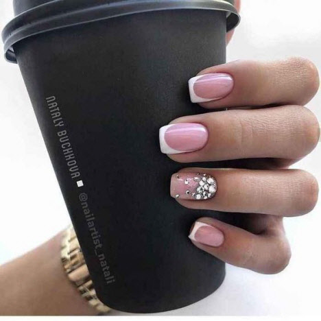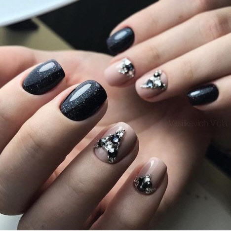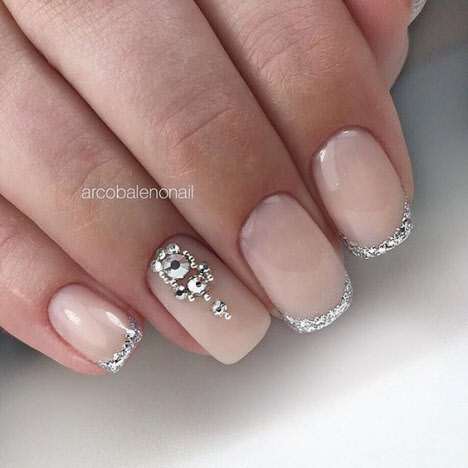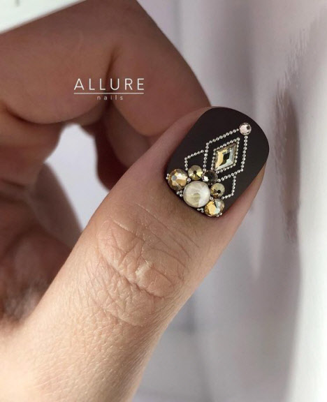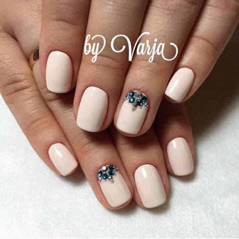 Maniküre mit Steinen und Strasssteinen für kurze Nägel