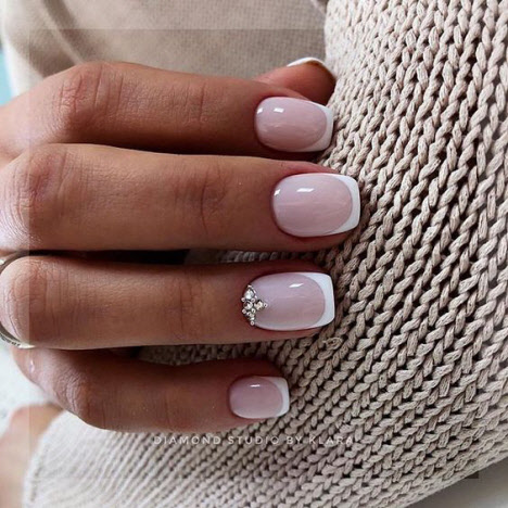 French Manicure ist ein aktueller Klassiker zu allen Jahreszeiten, unabhängig von neuen modischen Lacktönen oder neuen Applikationstechniken. French ist die Maniküre, die am besten aussieht, nur auf kurzen Nägeln. In den Jahren 2024-2025 ist eine klassische weiße Jacke auf Nude-Basis im Trend, die auf Wunsch mit Kieselsteinen oder Glitzern verziert oder auf matter Basis hergestellt werden kann.