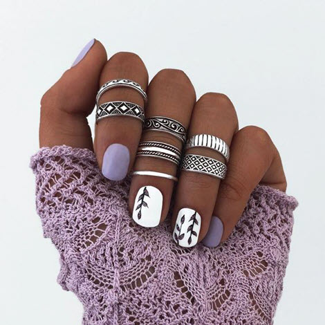Und all diese Arten von Maniküre werden mit interessanten Zeichnungen, Stempeln, Funkeln, Steinen, Kamifubuki und anderen dekorativen Elementen ergänzt.