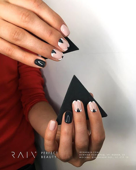 - Maniküre in kontrastierenden dunklen Farbtönen;