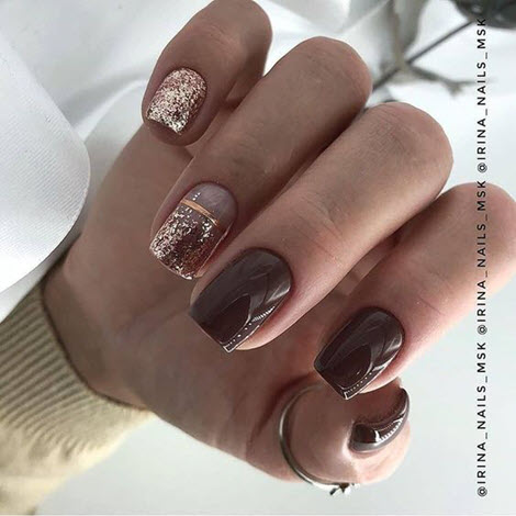Maniküre für kurze Nägel in dunklen Farben: Foto 2024-2025