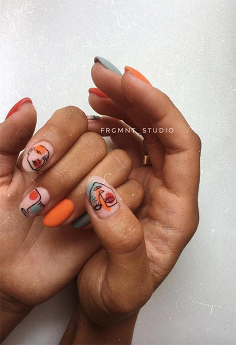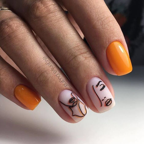 Abstrakte Zeichnungen im Stil des Minimalismus werden 2024-2025 eine interessante Ergänzung der Maniküre für kurze Nägel sein. Sie können eine ultra-trendige Maniküre kreieren, indem Sie mit polnischen Farb- und Formvariationen experimentieren. Minimalismus-Maniküre im matten Design sieht sehr stylisch aus. Die besten Optionen für die Maniküre im Stil des Minimalismus für kurze Nägel finden Sie in unserer Fotoauswahl: