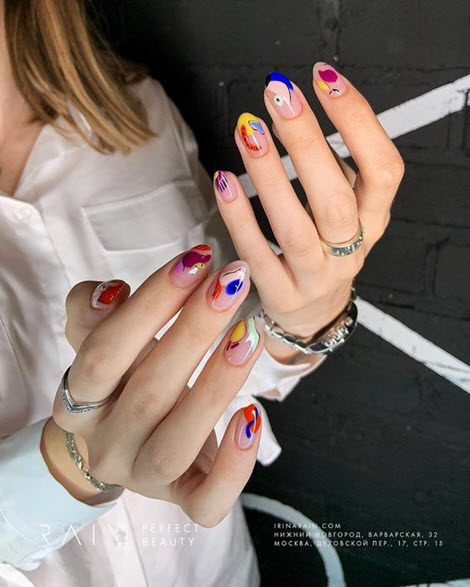 - farbenfrohe, reichhaltige Maniküre für einen Urlaub oder eine Feier;